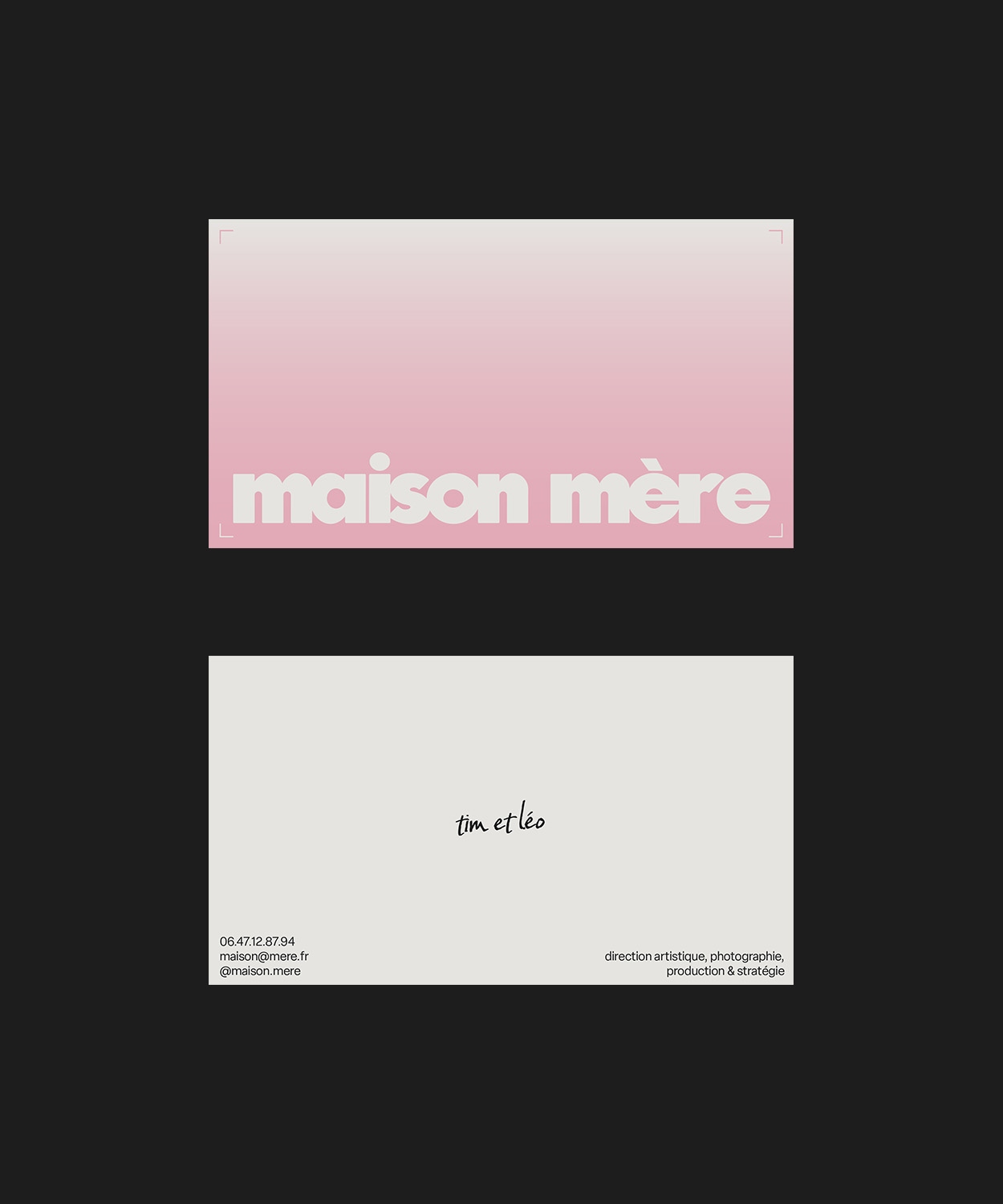 Une invitation dans leur QG pour parler de votre projet de shooting photo et vidéo. C’est la promesse de Maison Mère qui veut rester proche de ses clients tout en gardant une certaine qualité dans leur métier. Une identité visuelle simple qui inspire le côté familiale et l’excellence.